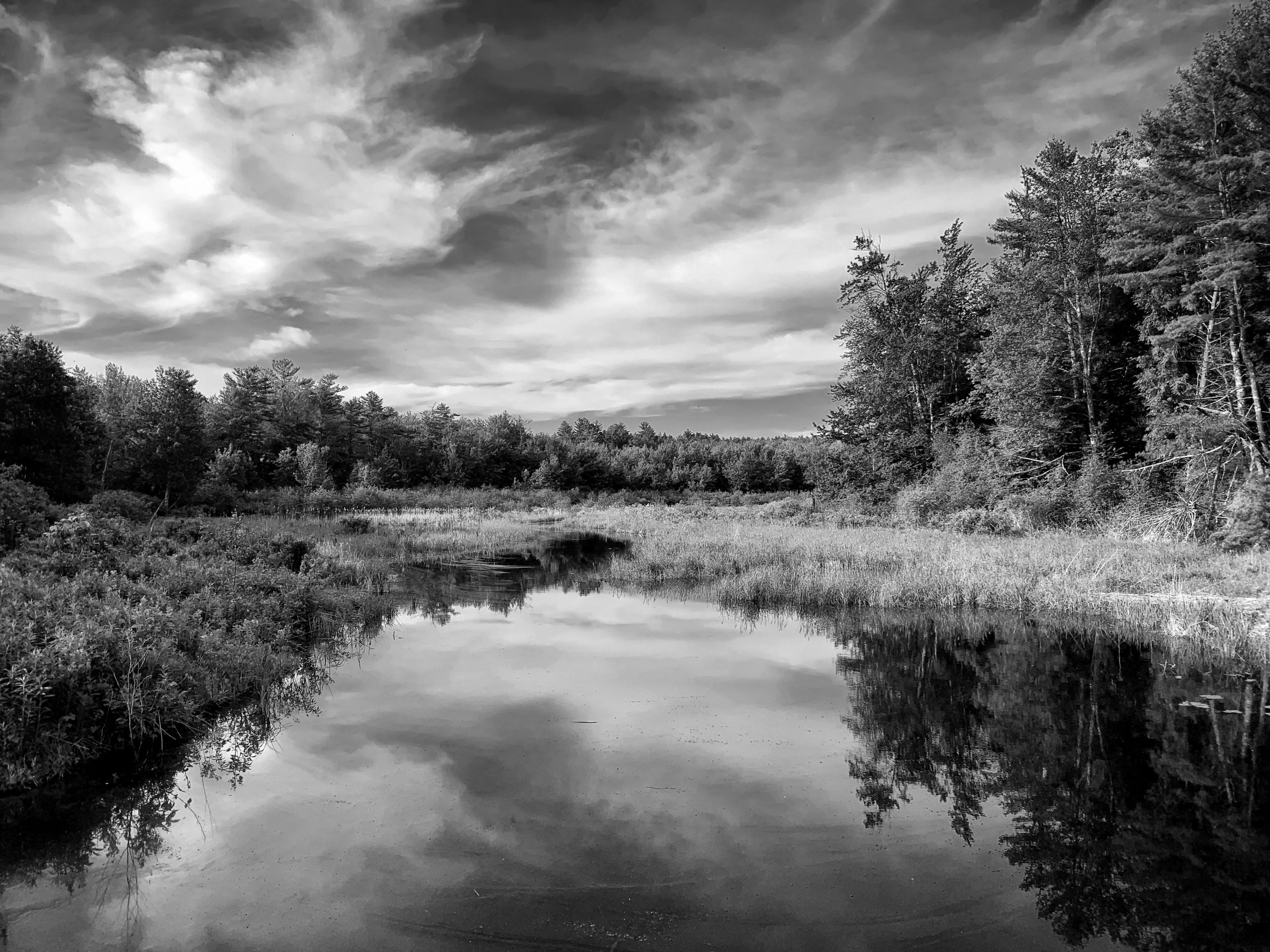 - Vermont pond in the morning. iPhone image converted to B&W in Snapseed